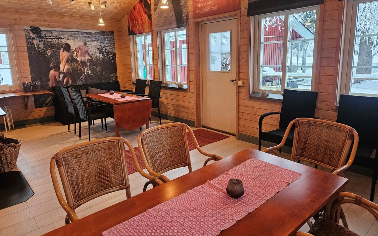 Takkahuoneessa on viihtyisä takka ja mukavat nojatuolit, joissa voi istua ja rentoutua saunomisen välillä ja jälkeen. Saunassa on 18 kWh sähkökiuas. Sauna on kahdeksankulmainen sauna, jonka seinissä on venäläistä kuivaa mäntyä. Terassilla on kaksi puulämmitteistä ruostumattomasta teräksestä valmistettua paljua. Joelle johtavalta polulta voit pulahtaa Kukkolaforsenin ihanaan veteen.